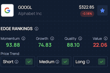 Benzinga's Edge Stock Rankings indicate that GOOGL is maintaining a strong price trend across short, mid and long-term periods. Click here to see how it measures up against its peers.