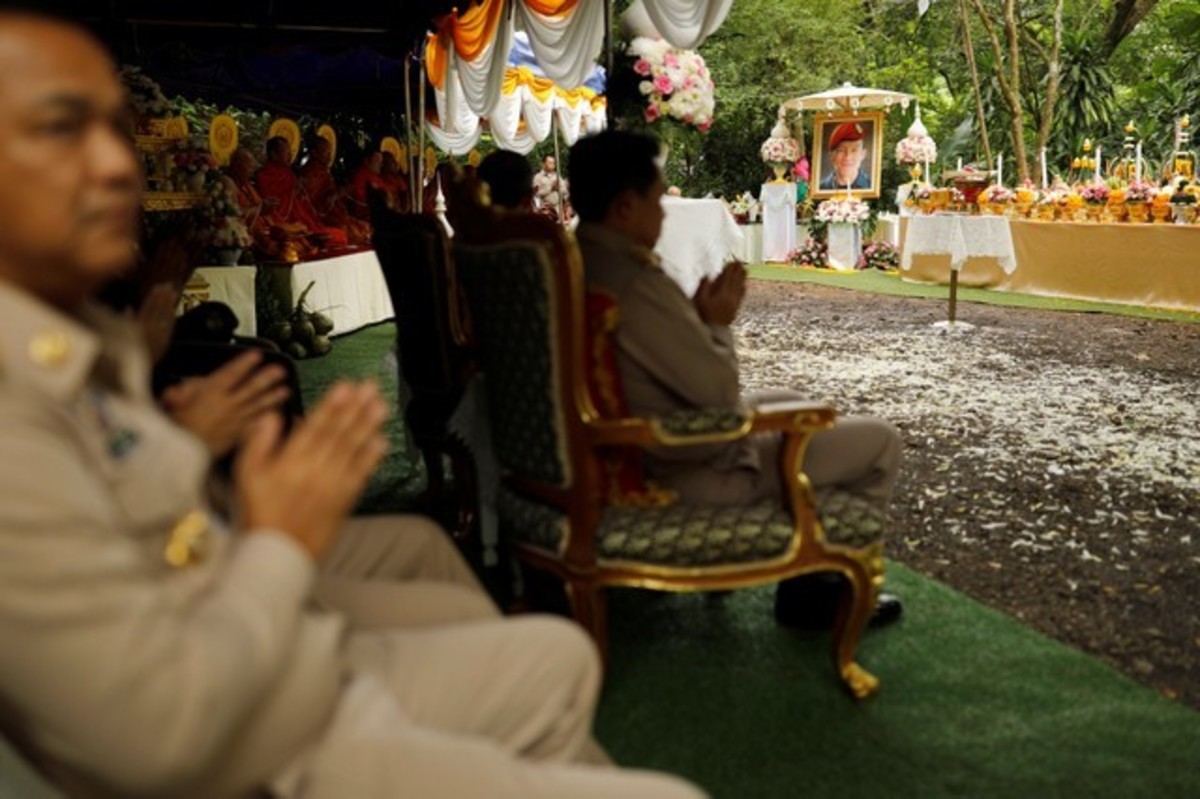 Mourners attend the funeral a former Thai navy diver, Samarn Kunan, who died during the rescue mission for the 12 boys of the "Wild Boars" soccer team and their coach, near the Tham Luang cave complex, in the northern province of Chiang Rai, Thailand July 16, 2018. REUTERS/Tyrone Siu