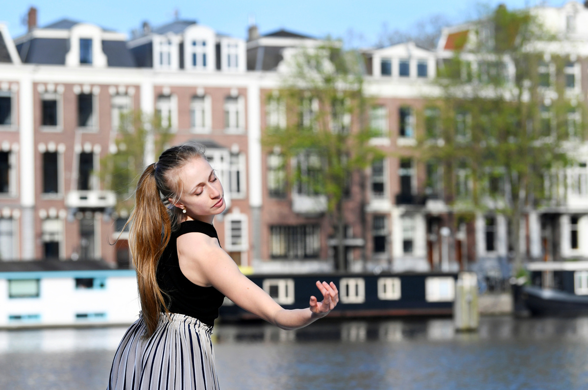 "I like this project as we can show what we want to do and what we are waiting for to do again," said 25-year old dancer Yvonne Slingerland, who performed her piece beside the Amstel river on Friday.