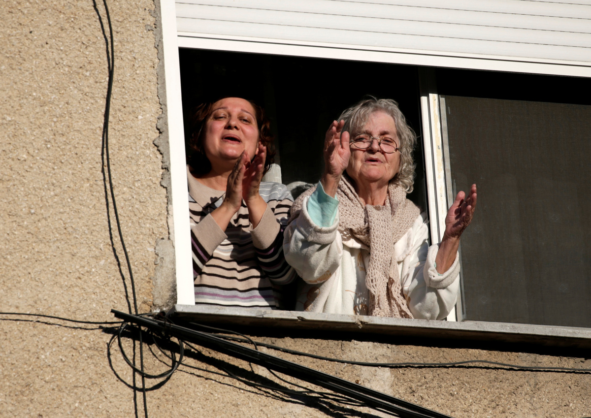 On a third floor balcony, a white-haired mother in her late sixties was also filming the concert on a video call, showing it to her 37-year-old twin daughters in lockdown in Milan, Italy, one of the European cities worst hit by the coronavirus.