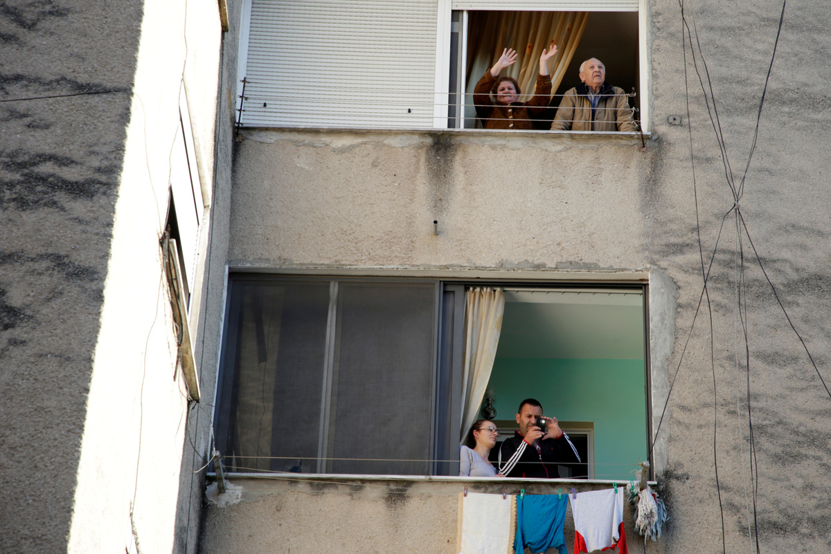As singing boomed among the apartment buildings of Albania's seaside town of Durres, families took to their wrought-iron balconies, clapped in the windows and danced on the rooftops.