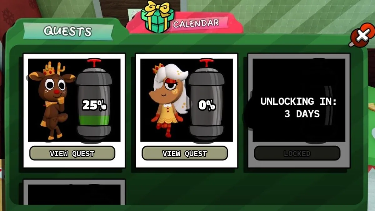 The Christmas Event also brings with it special quests for each of the four event Toons, which, when completed, reward you with special golden-accented skins for them. Each Toon gets their own three-part quest that you have to complete when playing as the character in question.