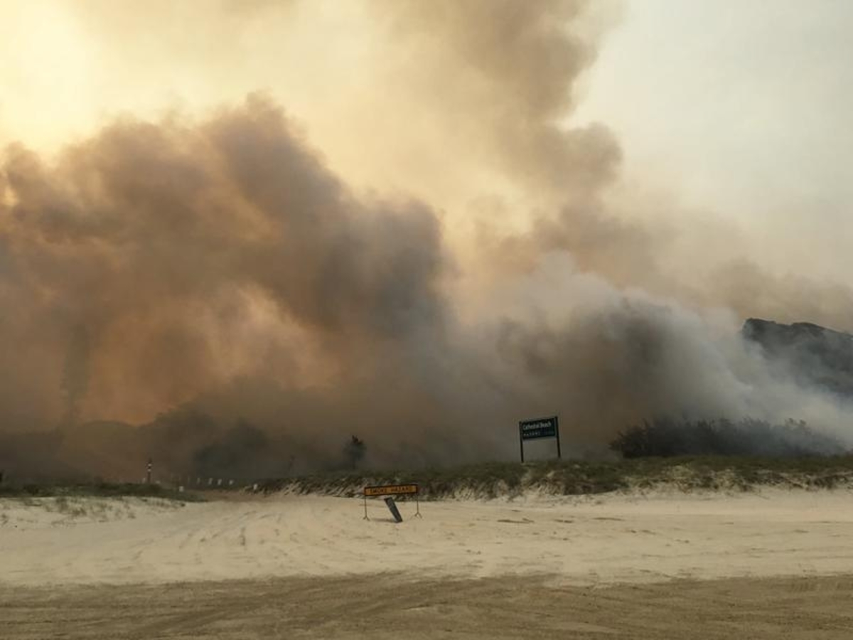 Blazes, which have already burnt half of the world heritage listed island, are moving south towards The Oakes. Fires are also burning near the Dundonga fire break, east of Kingfisher Bay Village and Resort.