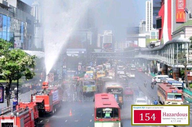 Disaster Prevention and Mitigation Department director-general Chayapol Thitisak said his agency is continuing to spray water into the air to reduce dust in Bangkok and three provinces in the Central Plains. Officials were looking to ensure there would be no outdoor burning, particularly along the sides of highways, he said.