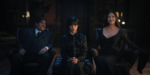The show also features Catherine Zeta-Jones as Morticia, Luis Guzmán as Gomez, and Isaac Ordonez as Pugsley. Alfred Gough, who co-created the series with Miles Millar, told Vanity Fair, “The relationship that kind of hangs over the season is really Wednesday’s relationship with Morticia. How do you step out of the shadow of a mother as glamorous as Morticia?” Gough also gave Wednesday’s peculiarities a backstory, in that she loathes her parents' gooey love for one another that has trademarked all Addams Family iterations. He added, “Wednesday is not scared of sharks or creepy crawlies or anything, but she’s afraid of emotion. Their overt displays of affection drive Wednesday crazy.”