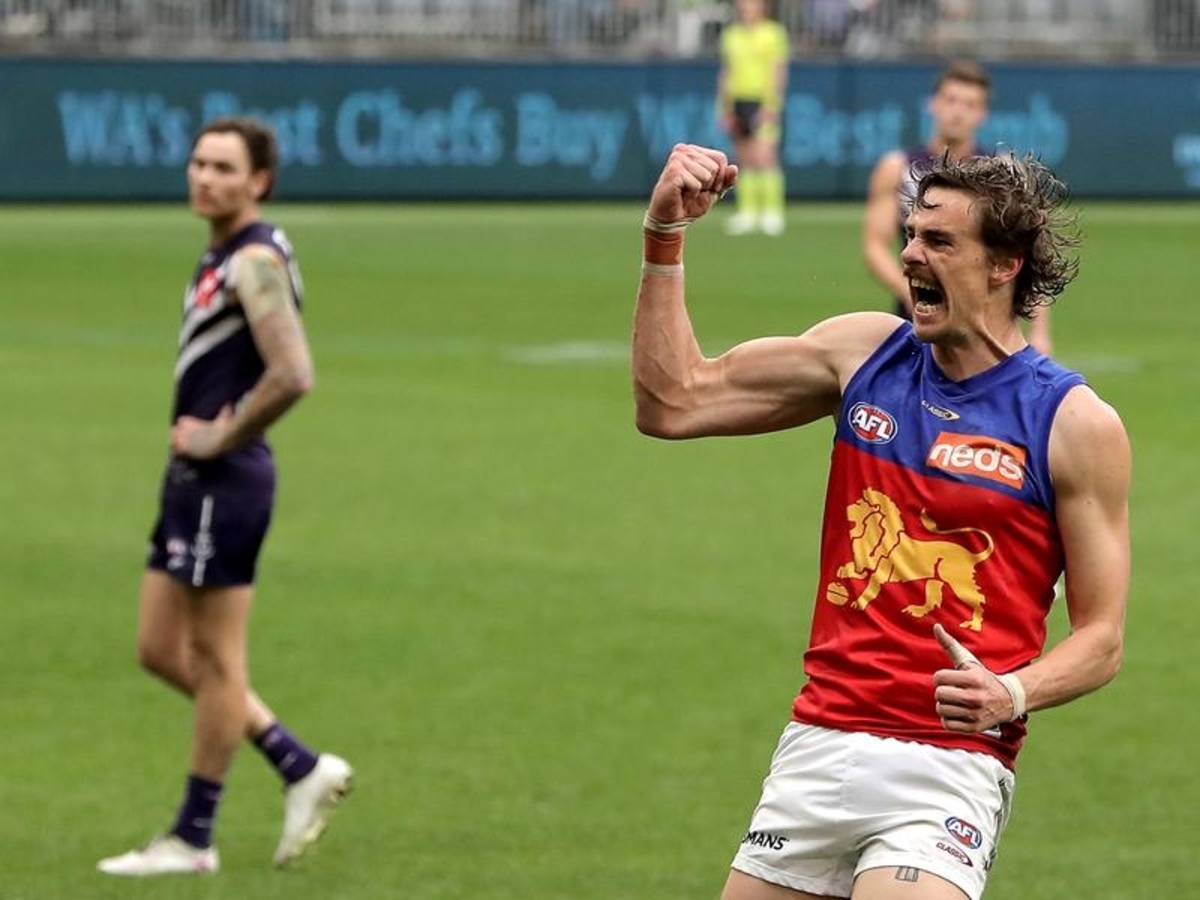 Brisbane forward Joe Daniher has booted four goals as the Lions regained their tackling mojo in a 64-point AFL win over Fremantle at Optus Stadium.