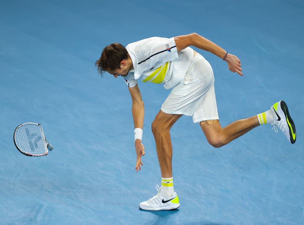 Medvedev entered Sunday’s final on the back of 20 straight wins in tour matches, 12 of which came against top-10 players. The Russian entered Sunday’s final having apathetically swatted aside the charming but dangerous Stefanos Tsitsipas in the semi-finals, with a ruthlessness that suggested he wouldn’t have been against swatting away the butterflies that fluttered around Djokovic and women’s champion Naomi Osaka on court last week. He entered Sunday’s final with the biggest title of his career – secured at London’s ATP Finals in November – still gleaming in his trophy cabinet.