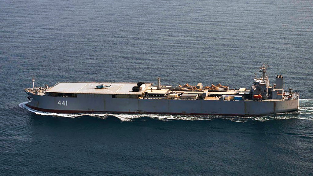 The two vessels left Iran's Bandar Abbas port in May. Images from Maxar Technologies dated April 28 appear to show seven Iranian fast-attack craft typically associated with its paramilitary Revolutionary Guard on the deck of the Makran.