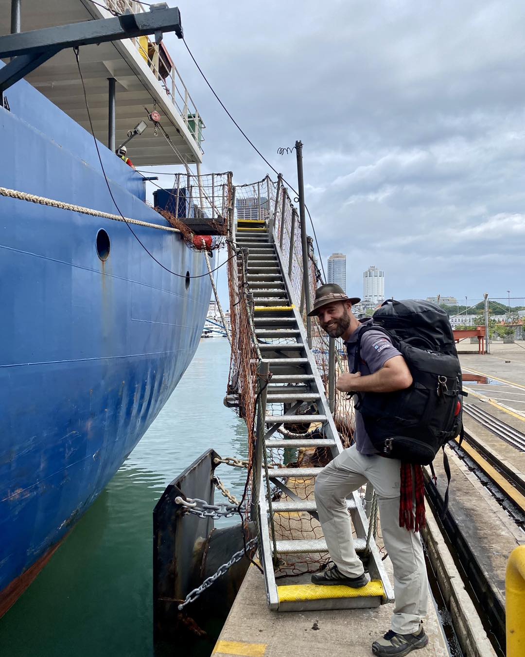 He spent at least 24 hours in each country, travelling by foot, car, bus, train and boat — including 37 container ships.