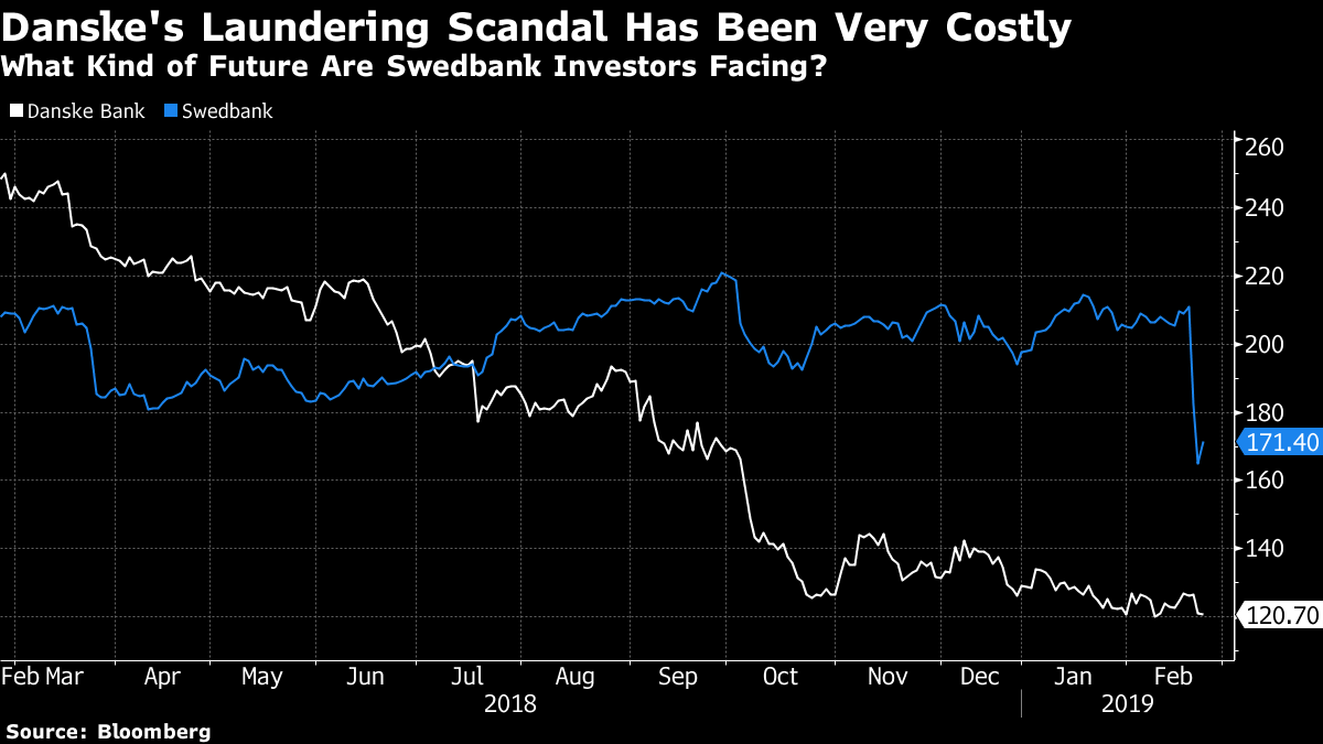 Ghose says there’s no way of knowing whether Swedbank’s scandal will become as big as Danske’s. “But events of 2018 taught investors not to rush in and buy on the dips,” he said. The news flow around money laundering allegations “is like un-peeling an onion -- it keeps going, layer after layer.”