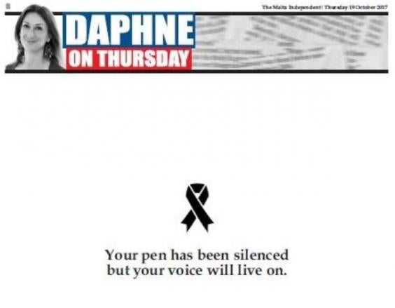 The newspaper for which Daphne Caruana Galizia wrote a weekly column has published a stark tribute to the investigative journalist days after she was killed by a car bomb.