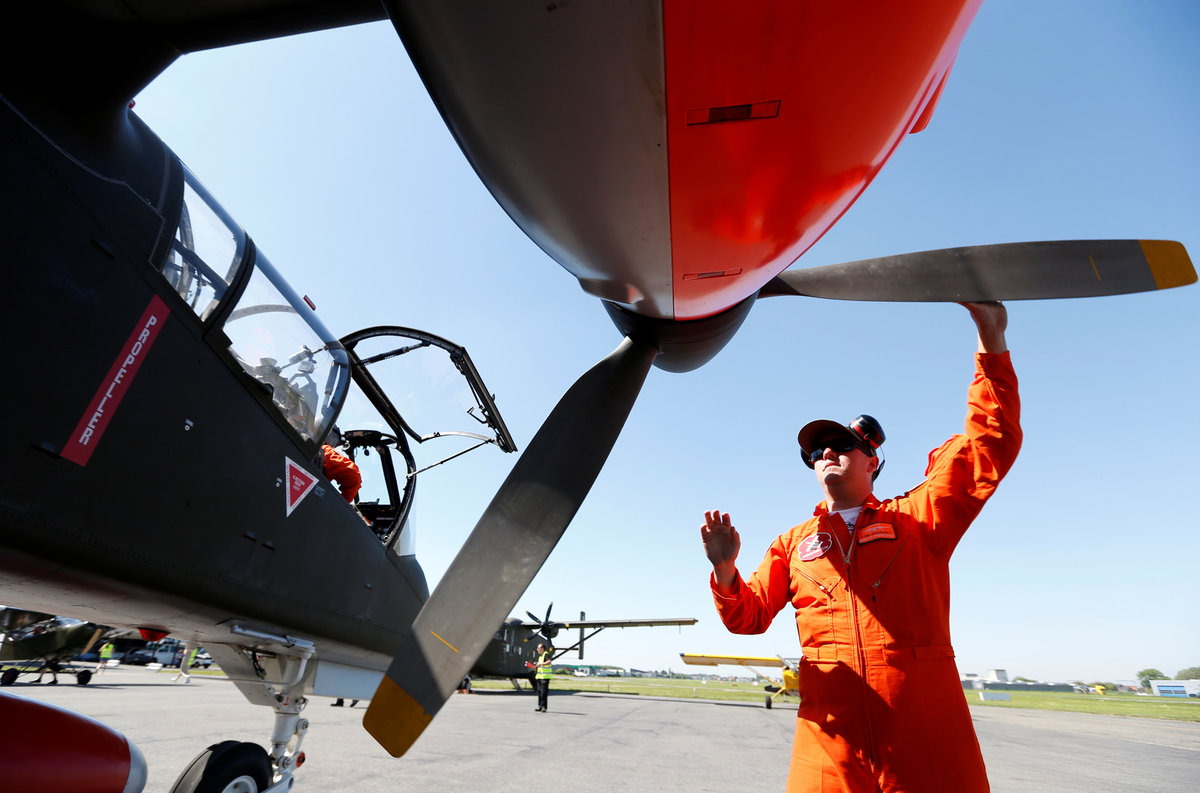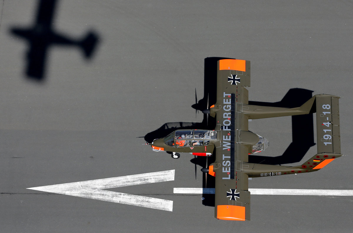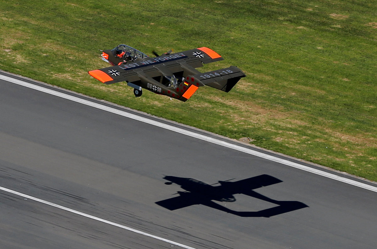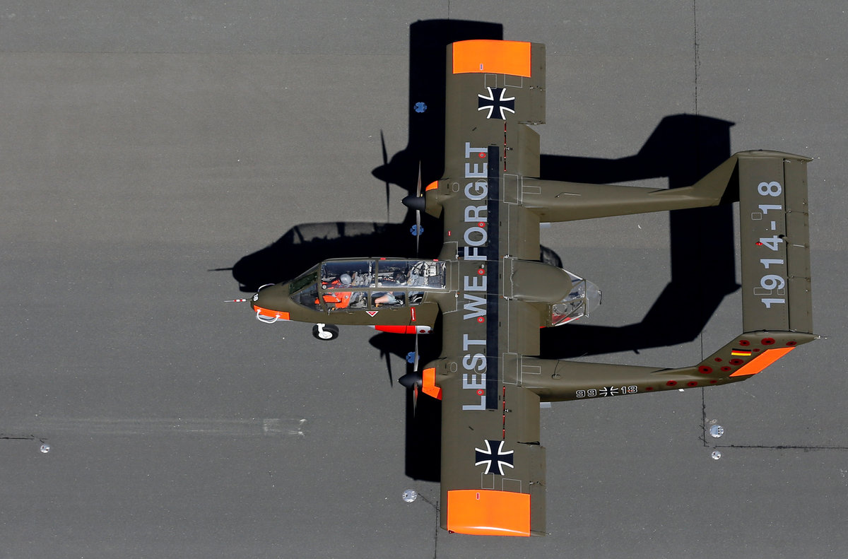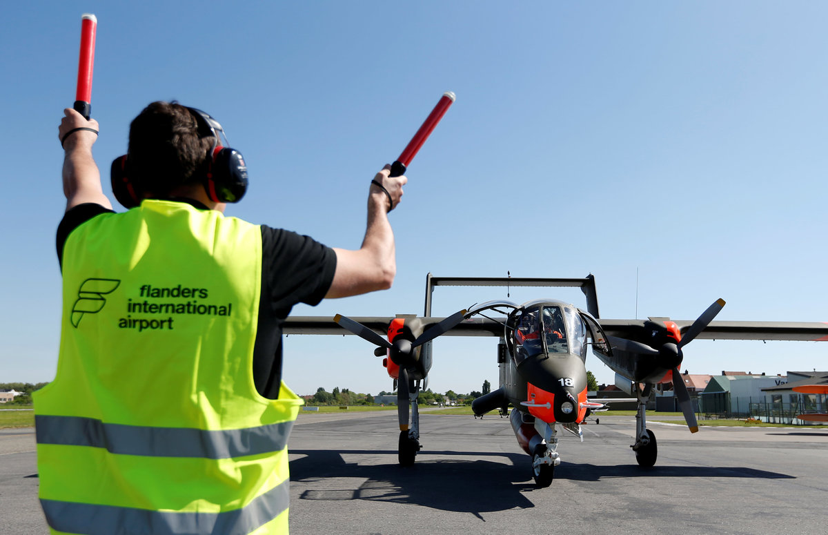 An OV-10 Bronco aircraft prepares to take off at Flanders international airport, ahead of the world's first Short Take Off & Landing competition on sand, in Wevelgem, Belgium May 8, 2018. REUTERS/Francois LenoirAn OV-10 Bronco aircraft, decorated with World War One commemoration motifs, flies over Flanders international airport, ahead of the world's first Short Take Off & Landing competition on sand, in Wevelgem, Belgium May 8, 2018. REUTERS/Francois LenoirA Stampe-Vertongen SV.4 aircraft flies over Flanders international airport, ahead of the world's first Short Take Off & Landing competition on sand, in Wevelgem, Belgium May 8, 2018. REUTERS/Francois LenoirAn OV-10 Bronco aircraft, decorated with World War One commemoration motifs, lands as a Maule MX-7 aircraft casts a shadow at Flanders international airport, ahead of the world's first Short Take Off & Landing competition on sand, in Wevelgem, Belgium May 8, 2018. REUTERS/Francois LenoirAn OV-10 Bronco aircraft, decorated with World War One commemoration motifs, flies over Flanders international airport, ahead of the world's first Short Take Off & Landing competition on sand, in Wevelgem, Belgium May 8, 2018. REUTERS/Francois LenoirA hostess of the Bronco demo team helps a passenger in an OV-10 Bronco aircraft, decorated with World War One commemoration motifs, at Flanders international airport, ahead of the world's first Short Take Off & Landing competition on sand, in Wevelgem, Belgium May 8, 2018. REUTERS/Francois LenoirAn OV-10 Bronco aircraft, decorated with World War One commemoration motifs, flies over Flanders international airport, ahead of the world's first Short Take Off & Landing competition on sand, in Wevelgem, Belgium May 8, 2018. REUTERS/Francois LenoirAn OV-10 Bronco aircraft, decorated with World War One commemoration motifs, flies over Flanders international airport, ahead of the world's first Short Take Off & Landing competition on sand, in Wevelgem, Belgium May 8, 2018. REUTERS/Francois LenoirAn OV-10 Bronco aircraft, decorated with World War One commemoration motifs, lands at Flanders international airport, ahead of the world's first Short Take Off & Landing competition on sand, in Wevelgem, Belgium May 8, 2018. REUTERS/Francois LenoirAn OV-10 Bronco aircraft, decorated with World War One commemoration motifs, takes off at Flanders international airport, ahead of the world's first Short Take Off & Landing competition on sand, in Wevelgem, Belgium May 8, 2018. REUTERS/Francois LenoirA technician inspects an OV-10 Bronco aircraft before taking off at Flanders international airport, ahead of the world's first Short Take Off & Landing competition on sand, in Wevelgem Belgium May 8, 2018. REUTERS/Francois Lenoir