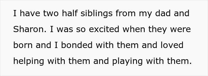 Redditor Square-Cloud4942 has even withdrawn from her father over the years because she felt like he prioritized his new family and happiness over her. The stepsiblings and stepmom weren’t exactly accommodating either, leaving her to adjust to the changes on her own. Only after 12 years did her father notice this and offer to go to a therapist, but the truth that came out was too much for the family to handle.