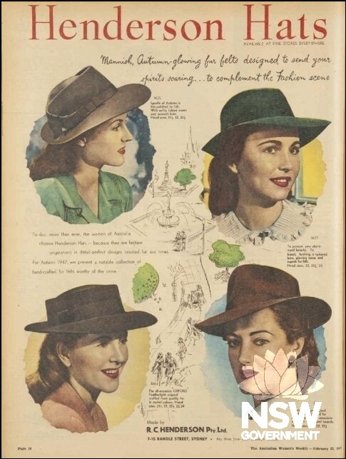 The NSW government's State Heritage Inventory shows RC Henderson Pty Ltd was a major manufacturer of ladies' hats from 1905 into the 1950s.