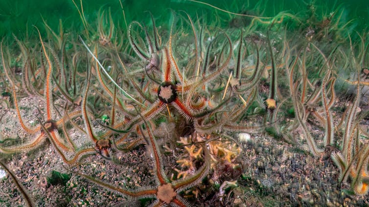 Nevertheless, these fisheries expanded because trawling was an efficient means of landing huge quantities of fish. Trawling’s success came at the expense of what we call marine animal forests, habitats built by animals like oysters, horse mussels and sponges – all swept away to leave behind vacant shifting sands, mud and gravel that predominate over vast swaths of seafloor today.