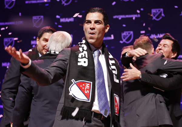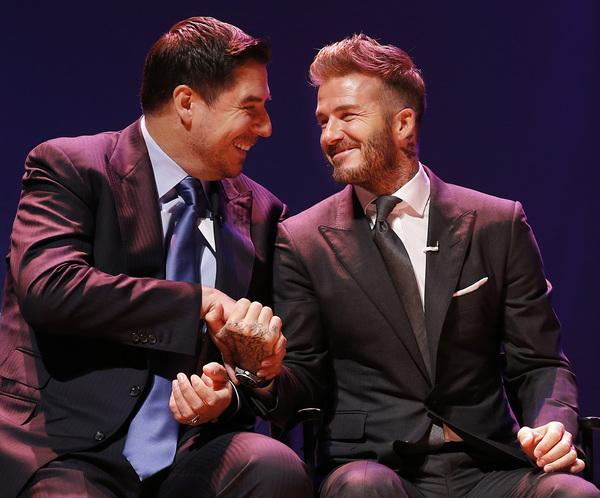 Beckham was flanked by his ownership-group partners _ Sprint CEO Marcelo Claure, who had been trying since 2008 to bring MLS to Miami; MasTec Chairman and co-founder Jorge Mas and MasTec CEO Jose R. Mas, late additions to the group, but instrumental as they are deeply-entrenched in Miami; and Simon Fuller, entertainment entrepreneur and creator of "American Idol." Softbank CEO Masayoshi Son, who is also a part-owner, was not in attendance.
