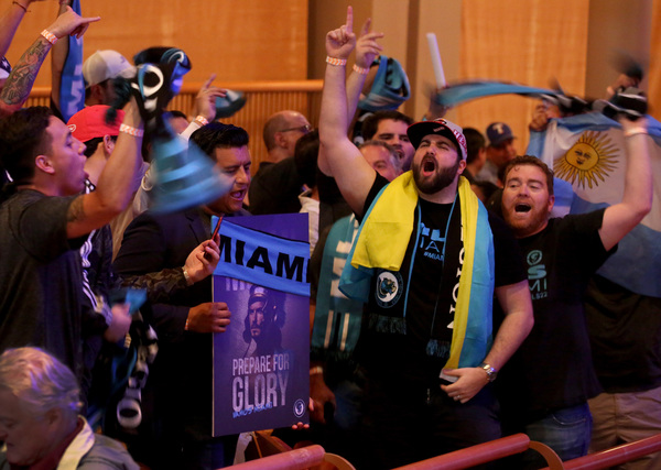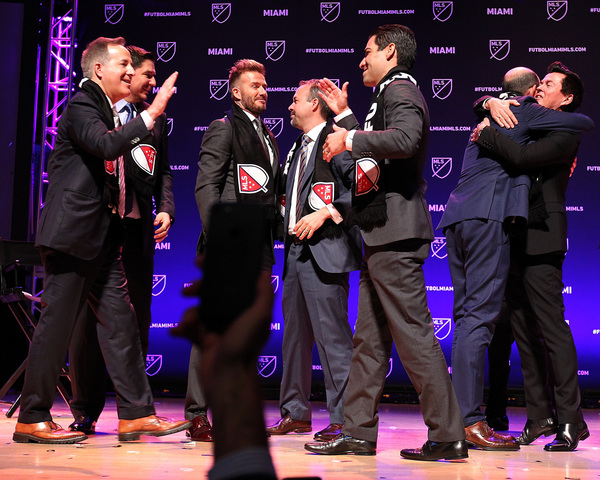 Beckham's team became a reality at a glitzy noon ceremony at the Adrienne Arsht Center. An audience of 1,700 and 300 media members were on hand for the big moment, when MLS Commissioner Don Garber gave Beckham and his partners league scarves as a sign of the done deal. A special piece of music by Emilio Estefan played in the background