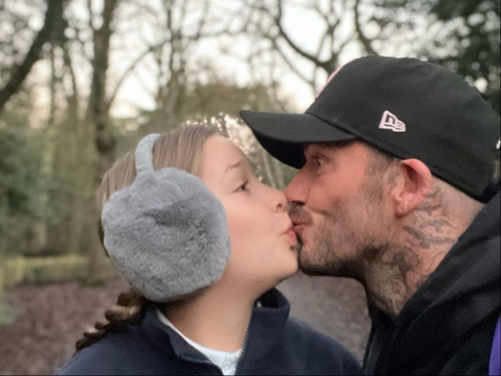 “Daddy & Princess Leia had a lovely walk this morning,” Beckham captioned two photos of himself and daughter Harper, including one in which the father-daughter duo can be seen giving each other a peck on the lips.
