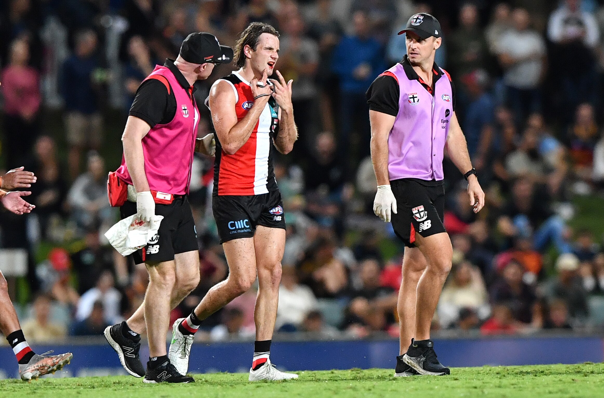 Looking at the case in point — Mackay left the ground, he connected with Clark and the collision left the Saints' emerging star with several fractures to his jaw, requiring surgery.