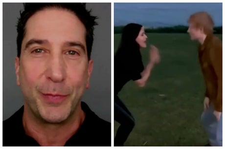 David Schwimmer has reacted to the viral video of Ed Sheeran performing “The Routine” from Friends with his former co-star, Courteney Cox.