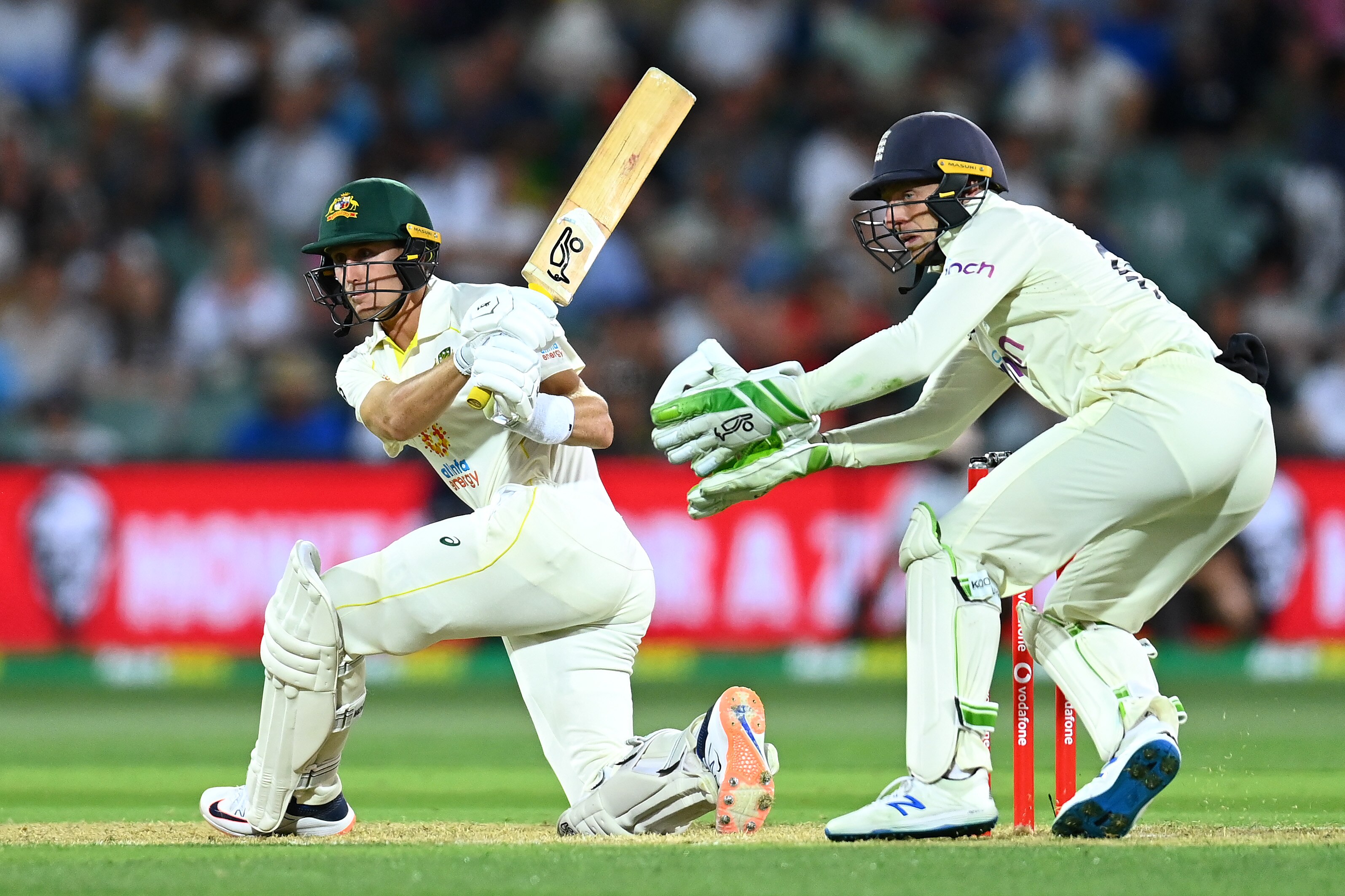 And England being England, there were again fielding mishaps that may prove fatal. Having pouched Harris so expertly, Buttler had a mirror-image chance diving the other way when Labuschagne was 21, but he parried it.