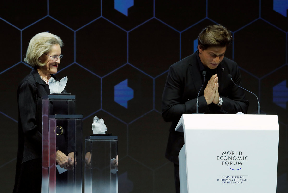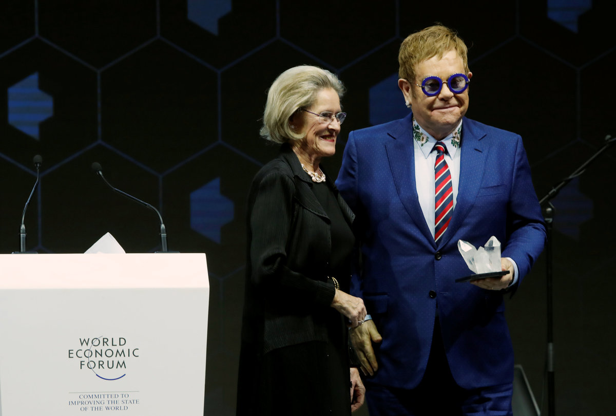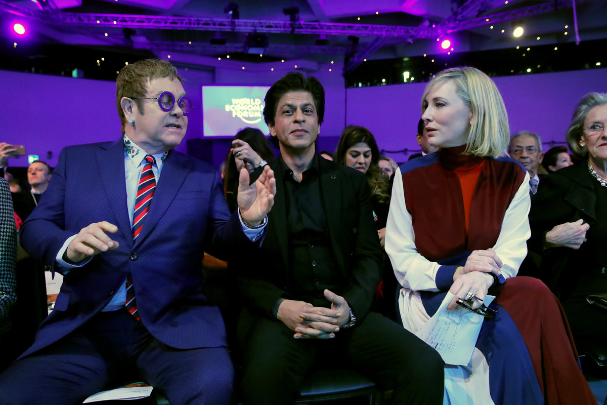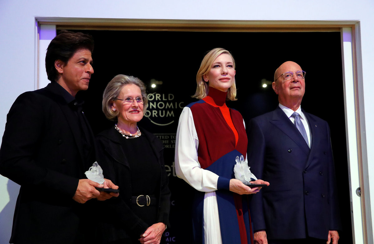 DAVOS, Switzerland (Reuters) - Film star Cate Blanchett, singer-songwriter Elton John and Bollywood actor Shah Rukh Khan received awards at the World Economic Forum in Davos on Monday for their work raising awareness about human rights issues.