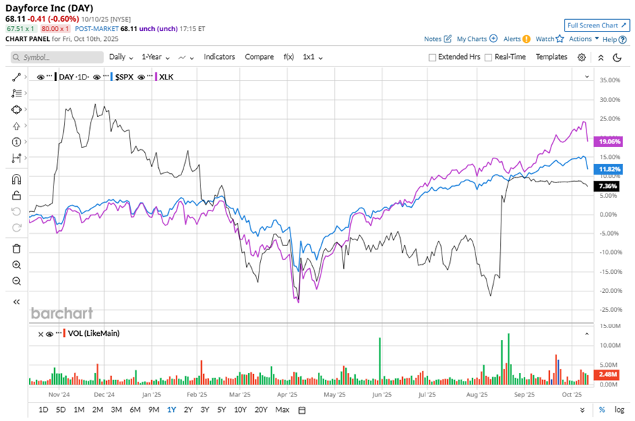 Dayforce Inc. (DAY), headquartered in Minneapolis, Minnesota, is a human capital management (HCM) software company that offers cloud-based solutions that integrate HR functions. With a market cap of $10.9 billion, the company offers a platform for talent and workforce management, human resources, benefits, and payroll services that help manage the entire employee lifecycle —from recruiting and onboarding to payroll. The workplace software giant is expected to announce its fiscal third-quarter earnings for 2025 in the near future.