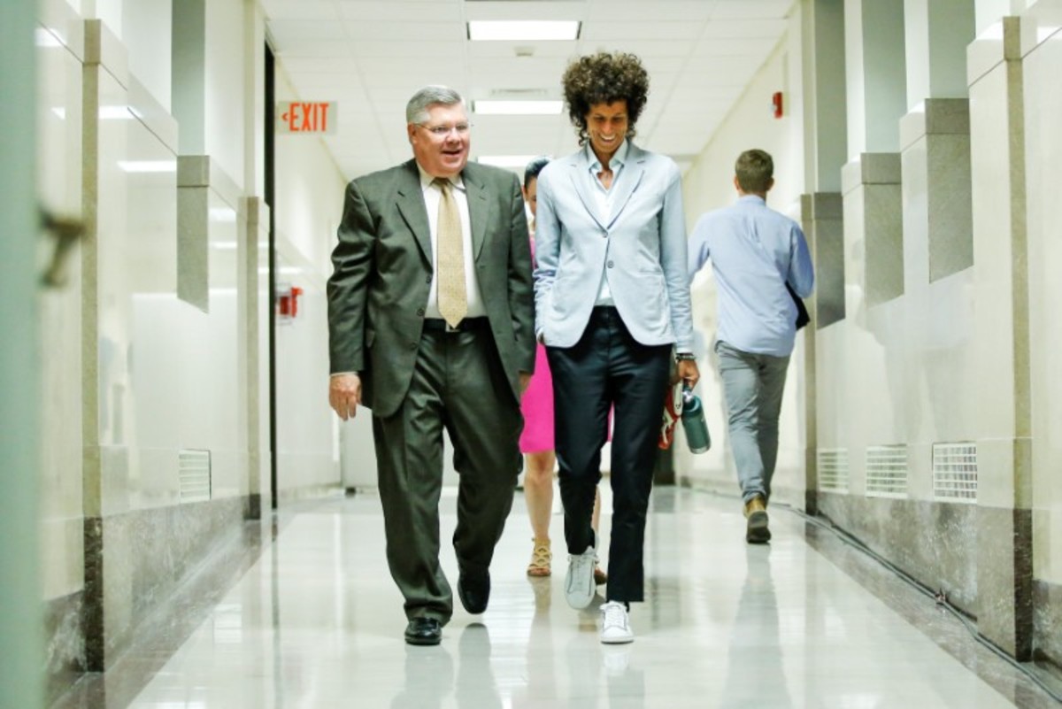Bill Cosby accuser Andrea Constand returns to the courtroom on the fourth day of jury deliberations in Cosby's sexual assault trial in Norristown, Pennsylvania, U.S. June 15, 2017. REUTERS/Eduardo Munoz/Pool