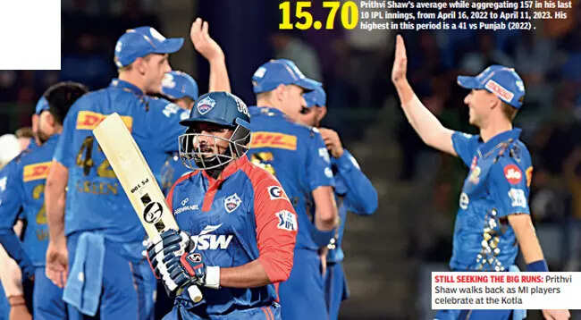 NEW DELHI: When Rohit Sharma disdainfully pulls a delivery of sheer pace from Anrich Nortje deep into the mid-wicket stands you know that he is batting at peak of his prowess. For most part of the reply to Delhi Capitals’s 172 at the Ferozeshah Kotla on Tuesday night, it seemed Rohit’s intimidating 45-ball 65 had set up a rather comfortable chase till Nortje turned up for the last over of the match defending just five against power-hitters Cameron Green and Tim David. After facing six near-perfect yorkers hurled at them, David and Green’s long limbs helped them scamper back for two runs off the final ball with six wickets to spare.