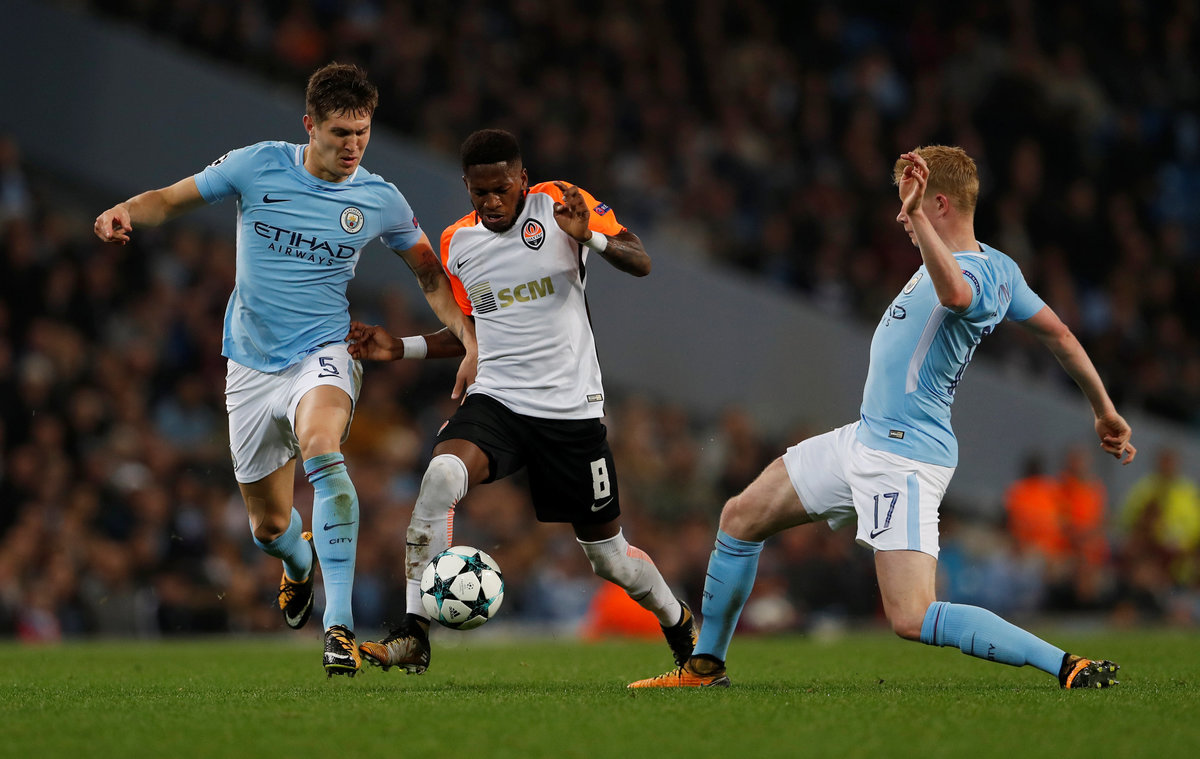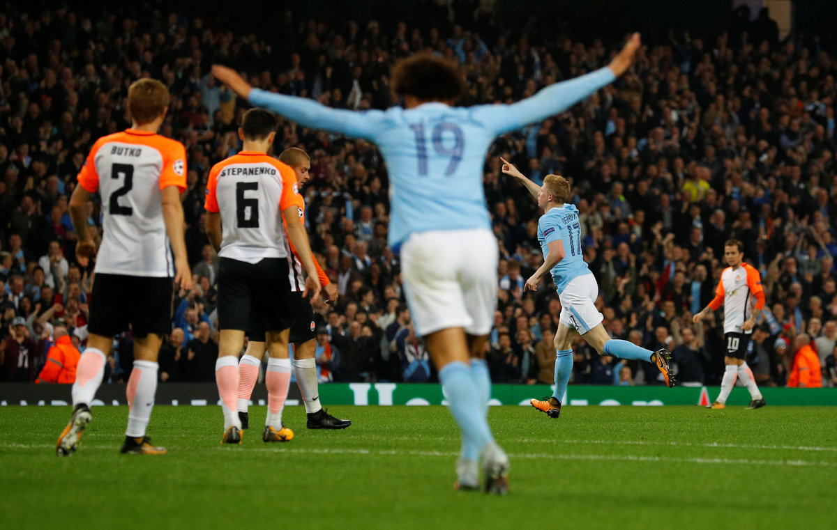 MANCHESTER, England (Reuters) - Kevin De Bruyne's perfectly-struck 48th minute goal and a late Raheem Sterling effort gave Manchester City a 2-0 win over Shakhtar Donetsk in their Champions League Group F game on Tuesday to make it two wins out of two for Pep Guardiola's side.
