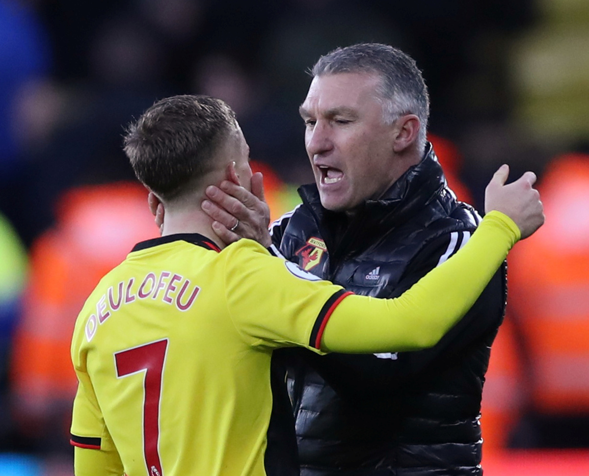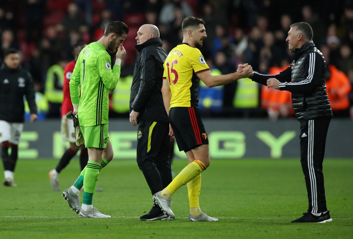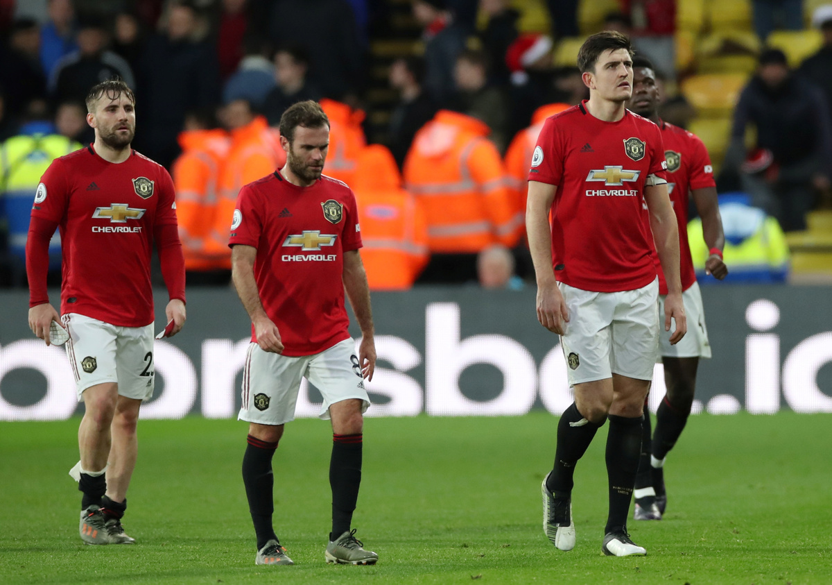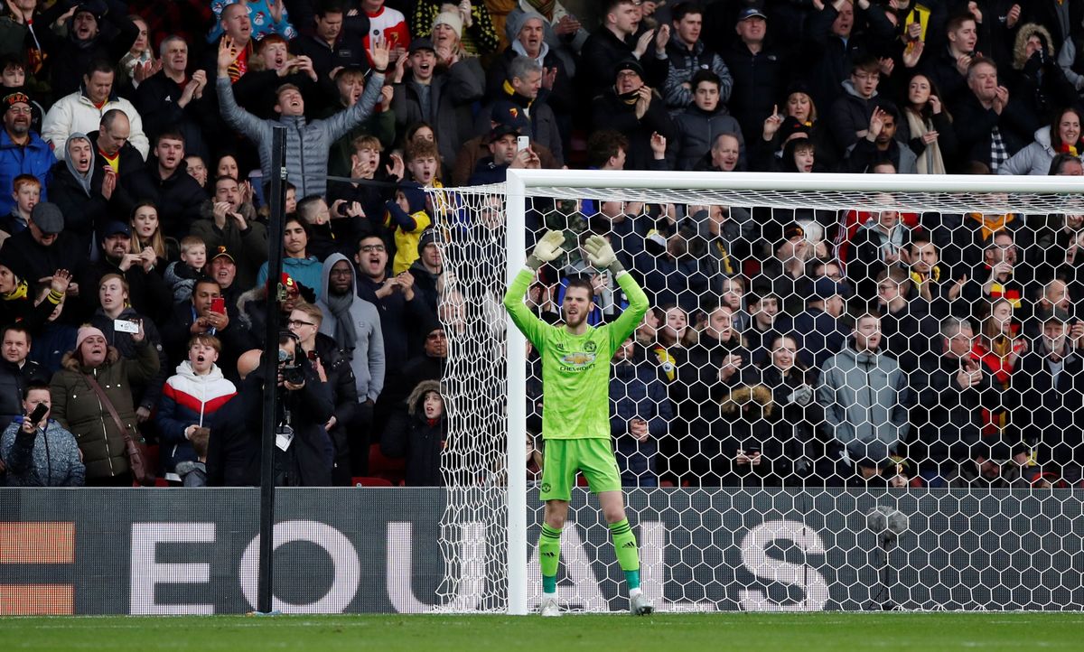 Soccer Football - Premier League - Watford v Manchester United - Vicarage Road, Watford, Britain - December 22, 2019 Manchester United's David de Gea reacts as fans look on Action Images via Reuters/Paul Childs Soccer Football - Premier League - Watford v Manchester United - Vicarage Road, Watford, Britain - December 22, 2019 Watford's Gerard Deulofeu in action with Manchester United's Aaron Wan-Bissaka REUTERS/David Klein Soccer Football - Premier League - Watford v Manchester United - Vicarage Road, Watford, Britain - December 22, 2019 Manchester United's Harry Maguire and teammates look dejected after the match REUTERS/David Klein Soccer Football - Premier League - Watford v Manchester United - Vicarage Road, Watford, Britain - December 22, 2019 Manchester United's David de Gea reacts after Watford's Ismaila Sarr scores their first goal Action Images via Reuters/Paul Childs Soccer Football - Premier League - Watford v Manchester United - Vicarage Road, Watford, Britain - December 22, 2019 Watford's Ismaila Sarr celebrates scoring their first goal with teammates REUTERS/David Klein Soccer Football - Premier League - Watford v Manchester United - Vicarage Road, Watford, Britain - December 22, 2019 Manchester United's Paul Pogba in action with Watford's Ben Foster Action Images via Reuters/Paul Childs Soccer Football - Premier League - Watford v Manchester United - Vicarage Road, Watford, Britain - December 22, 2019 Watford's Troy Deeney shakes hands with Manchester United's David de Gea after the match REUTERS/David Klein Soccer Football - Premier League - Watford v Manchester United - Vicarage Road, Watford, Britain - December 22, 2019 Manchester United's Juan Mata and Harry Maguire applaud fans after the match Action Images via Reuters/Paul Childs Soccer Football - Premier League - Watford v Manchester United - Vicarage Road, Watford, Britain - December 22, 2019 Watford's Craig Cathcart celebrates with manager Nigel Pearson after the match as Manchester United's David de Gea looks dejected REUTERS/David Klein Soccer Football - Premier League - Watford v Manchester United - Vicarage Road, Watford, Britain - December 22, 2019 Watford manager Nigel Pearson celebrates with Gerard Deulofeu REUTERS/David Klein