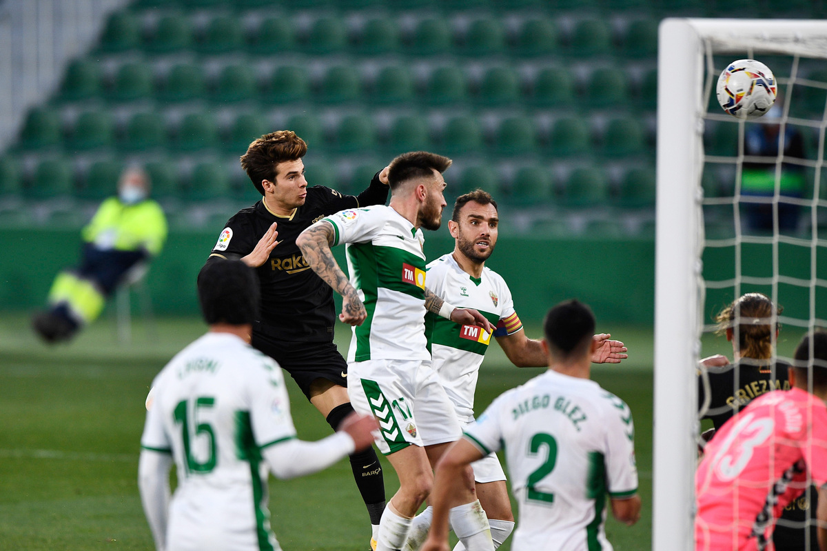 Elche winger Emiliano Rigoni missed a great chance to level for the home side in the second half after a glaring error from Barca defender Oscar Mingueza but was denied by a heroic save from Barca keeper Marc-Andre ter Stegen.