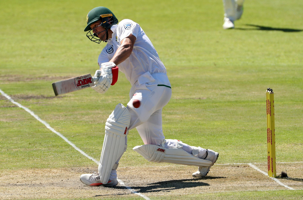 De Villiers went to his 22nd test century before lunch with a characteristically innovative stroke, arching his back and helping a short ball over the slips and to the boundary.
