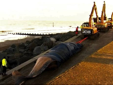 But the seventh, which beached close to to Withinsea’s South Promenade, was removed on Thursday using a specially created metal sledge and heavy plant vehicles.