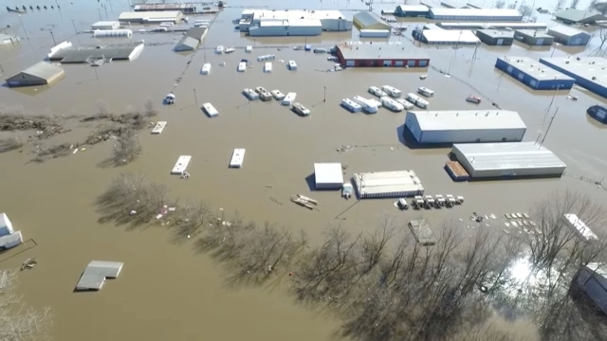 Missouri River flooding was triggered by last week's "bomb cyclone" storm, which killed at least four people, drowned livestock and closed dozens of roads across a large swath of Nebraska and Iowa. Property and financial losses for the two Midwestern states were projected to surpass $3 billion.