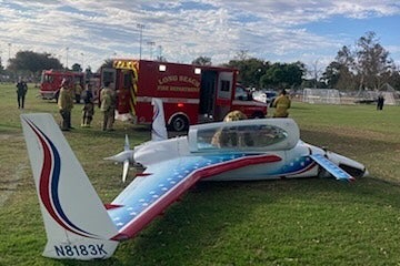 He was stopping in Long Beach en route to French Valley in Riverside County when the plane’s engine went out, hangar manager Dennis Lord told ABC7.