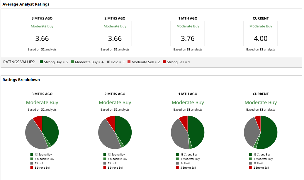 Consensus remains constructive despite the near-term dips in estimates. Right now, 33 analysts surveyed rate COIN a “Moderate Buy.” The average price target is $391.33, implying roughly 50% upside.