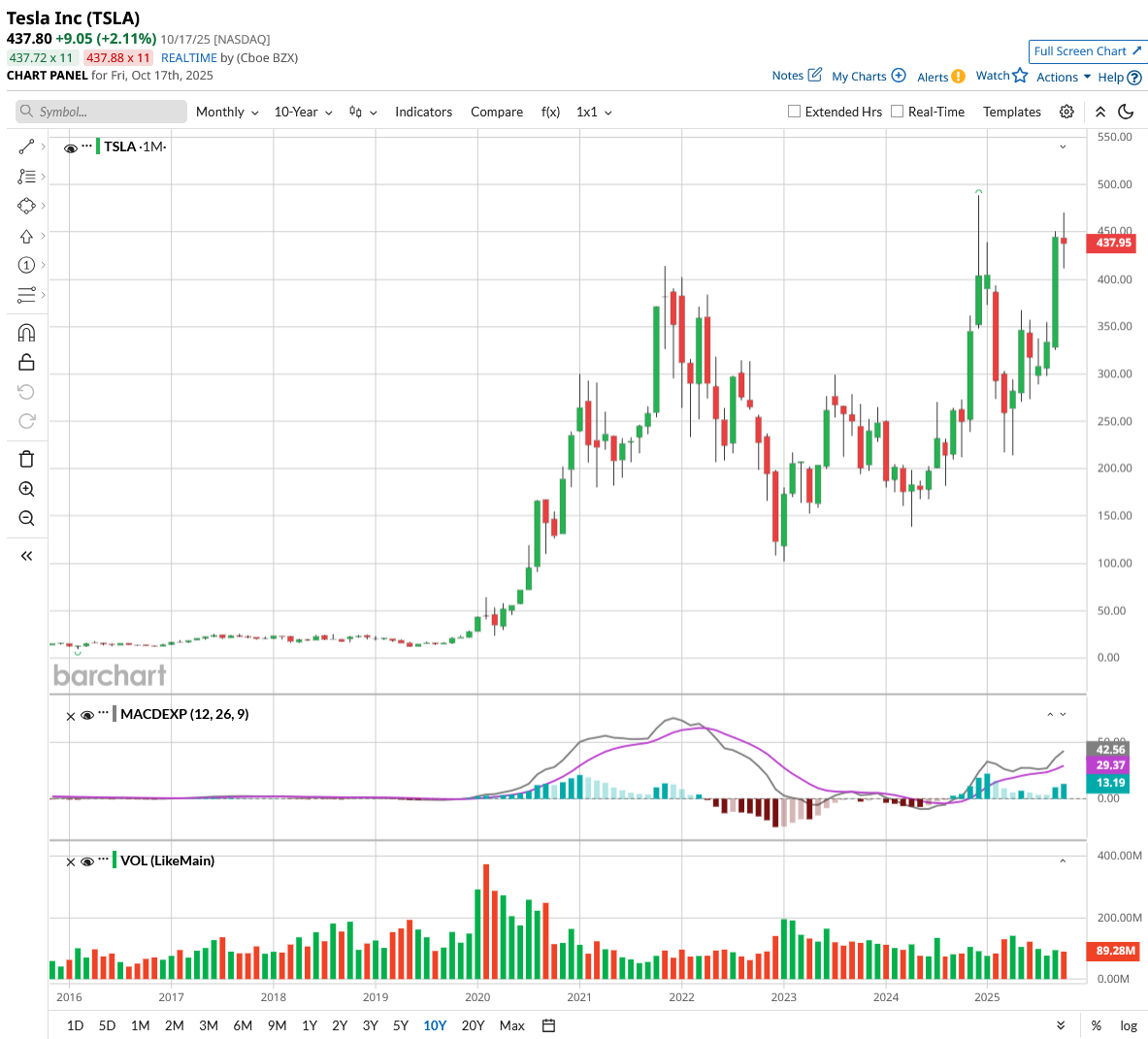 The Q3 earnings season has begun, and electric vehicle (EV) manufacturer Tesla (TSLA) is scheduled to report its quarterly results on Oct. 22. According to consensus estimates, Tesla is forecast to report revenue of $26.58 billion and adjusted earnings of $0.55 per share in Q3 of 2025. In the year-ago period, it reported revenue of $25.18 billion and earnings of $0.72 per share.