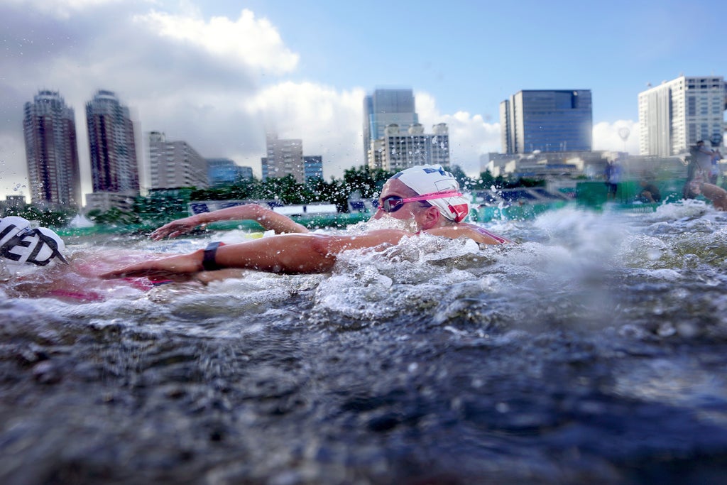 The first Black female swimmer to make the British team struggled to a 19th-place finish in the 10-kilometer marathon swimming event Wednesday morning.