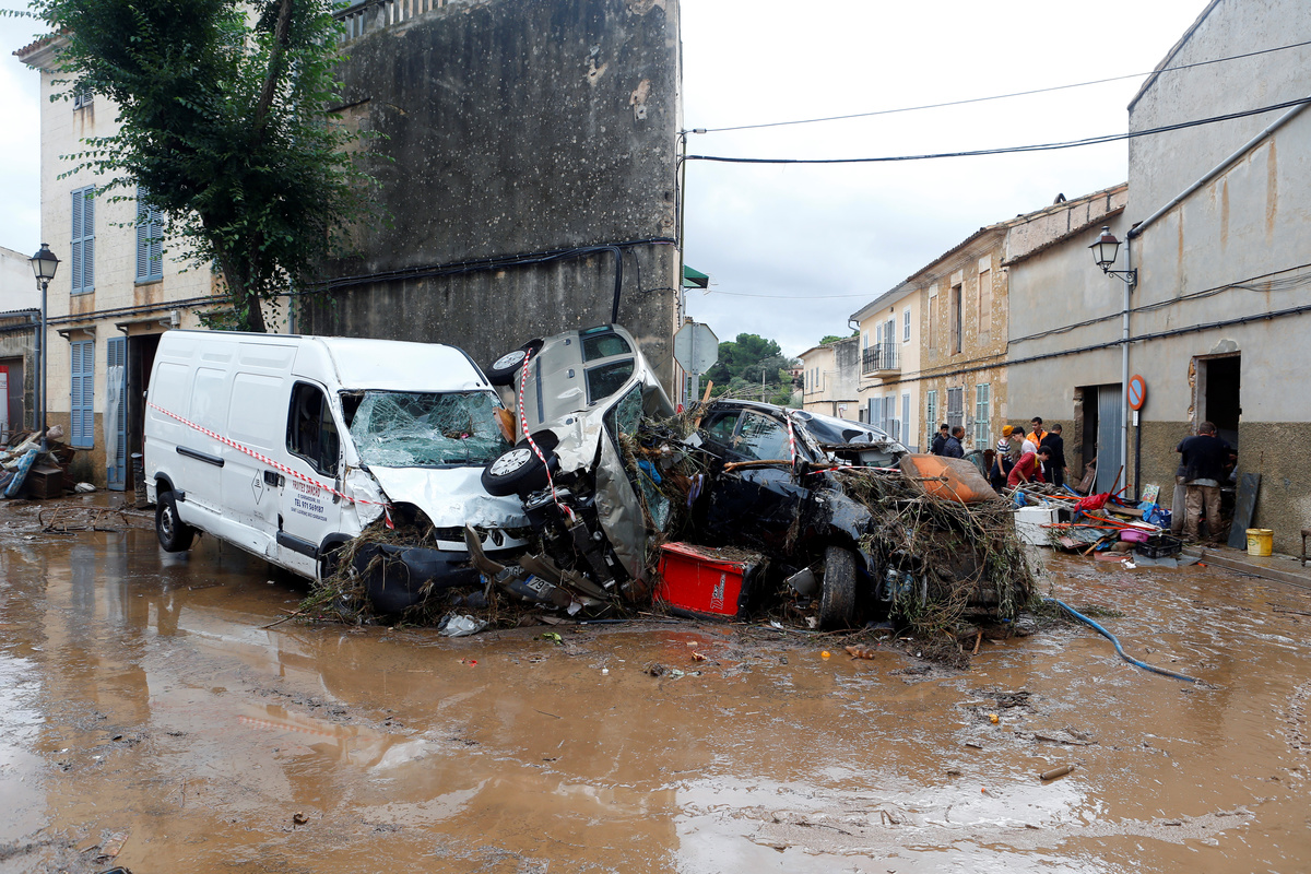 REUTERS/Enrique CalvoDestroyed cars are seen on the streets as heavy rain and flash floods hit Sant Llorenc de Cardassar on the island of Mallorca. REUTERS/Enrique Calvo