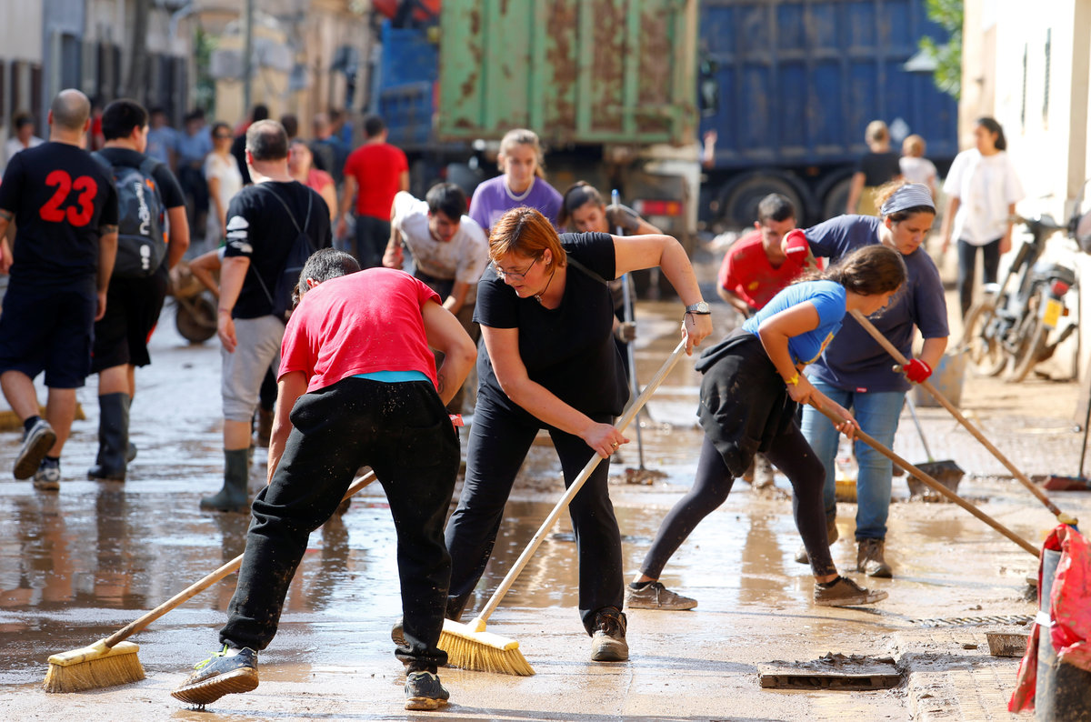 Mallorca-born tennis star Rafael Nadal joined the clean-up efforts on Wednesday, sweeping away mud and water from a building in Sant Llorenc.