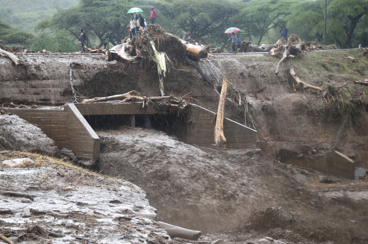 The downpour began on Friday in West Pokot County, which borders Uganda, and worsened overnight, causing flooding and mudslides that swept away four bridges and left villages inaccessible by road.