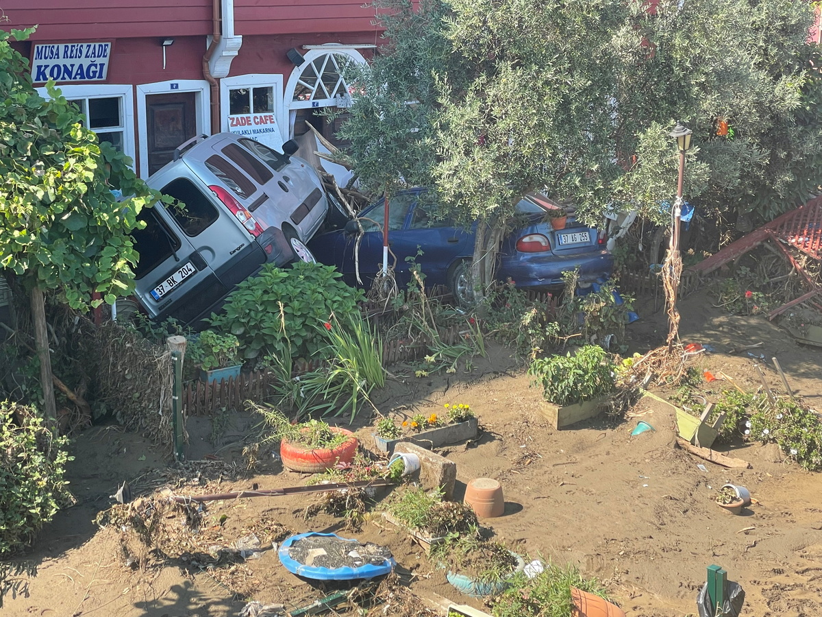 Damaged vehicles are seen following the flash floods that swept through towns in the Turkish Black Sea region, in the town of Ilisi, in Kastamonu province, Turkey, August 15, 2021. REUTERS/Mehmet Emin CaliskanA damaged vehicle and a partially collapsed building are seen following the flash floods that swept through towns in the Turkish Black Sea region, in the town of Ilisi, in Kastamonu province, Turkey, August 15, 2021. REUTERS/Mehmet Emin Caliskan