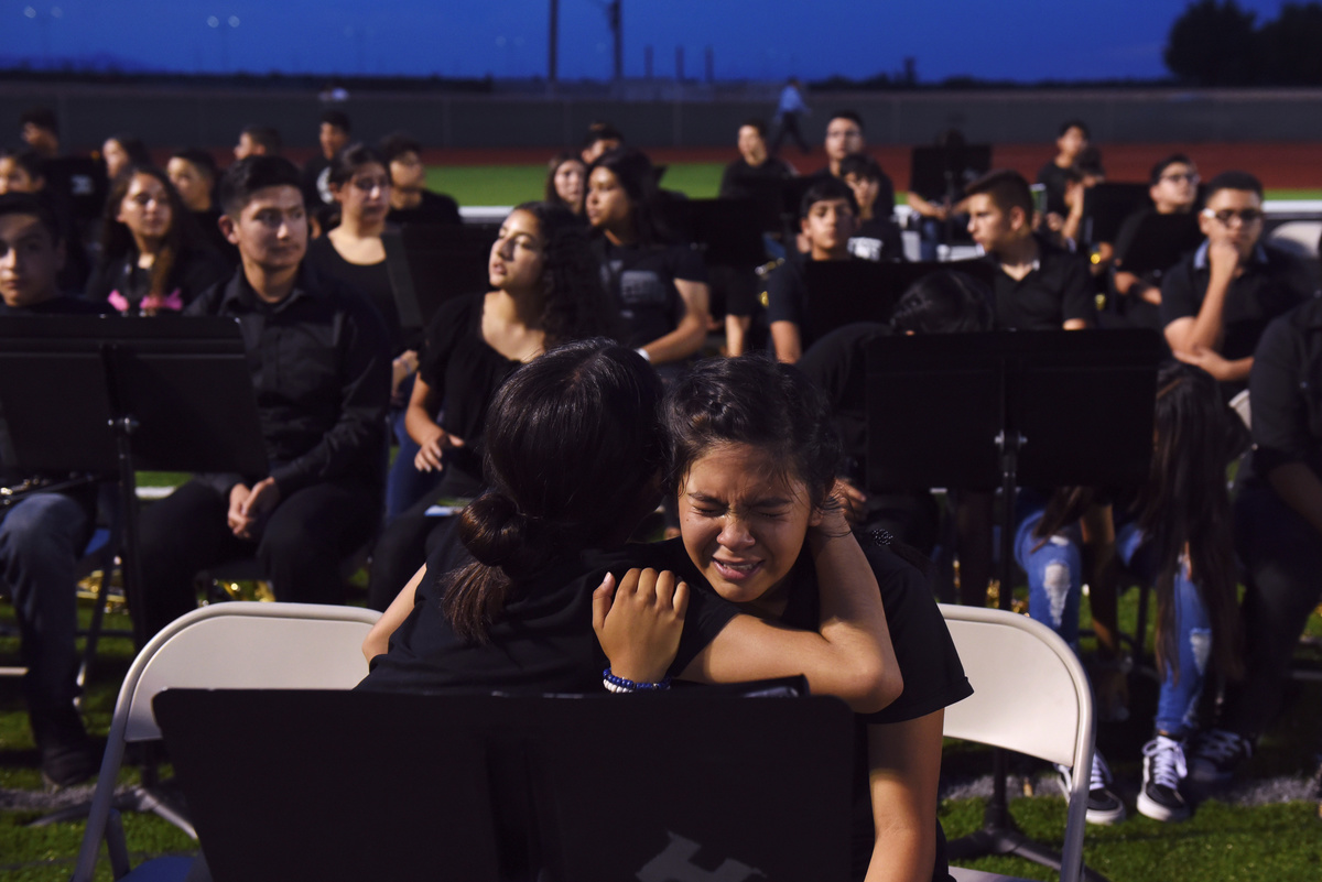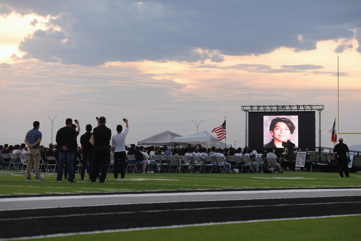 A crowd of several hundred classmates, teachers and relatives filled a high school football stadium in the El Paso suburb of Horizon on Monday evening for a memorial service honoring the youngest of the 22 people slain - 15-year-old Javier Rodriguez. Friends said he held dual U.S.-Mexican citizenship.