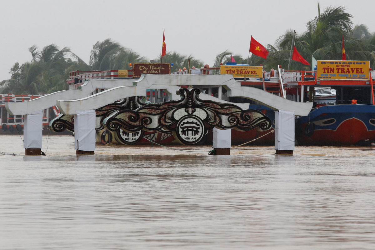But in much of the ancient town of Hoi An, a UNESCO World Heritage site that spouses of APEC leaders are scheduled to visit on Saturday, muddy waters rose to head height and people boated through the streets.