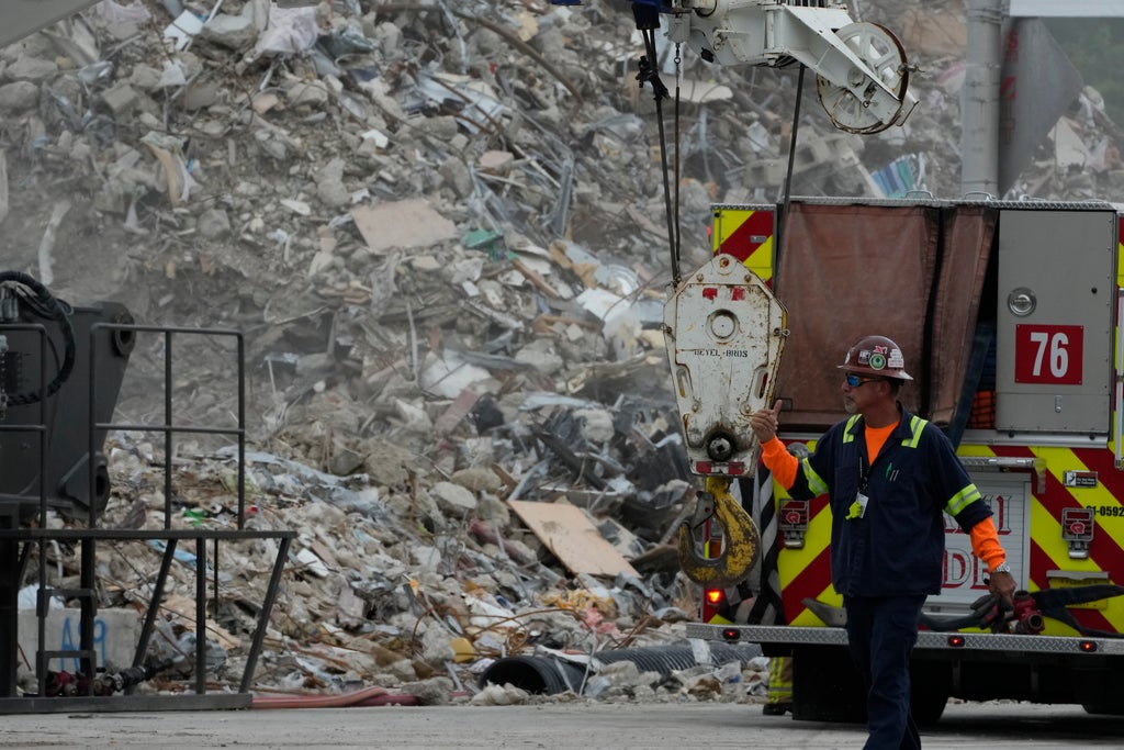 The death toll in the Miami-area condominium building collapse climbed to 95 on Tuesday as crews worked for a 20th day to find victims in the rubble.