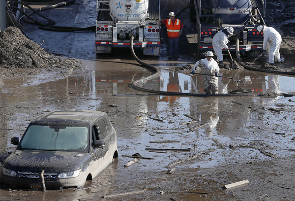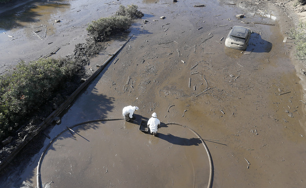 CalTrans crews, aided by private contractors and the Army Corps of Engineers, have been working around the clock on the approximately two-mile stretch of the debris-strewn freeway near Montecito. Crews have removed most of the vehicles abandoned in the storm, including a number of tractor-trailers, but a significant amount of debris and mud remains.
