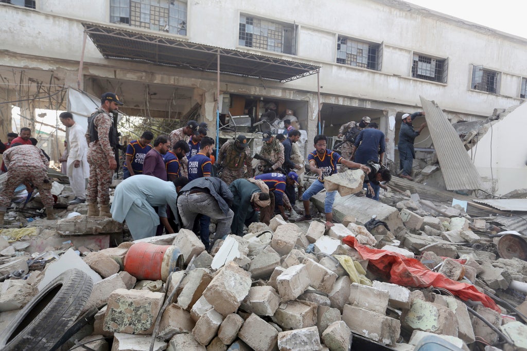 The blast destroyed the HBL bank building constructed over the sewer. The building was one of several ordered to vacate after violating building laws, according to Mukhtar Abro, a local administrator, who said the structures were to be demolished in coming weeks.