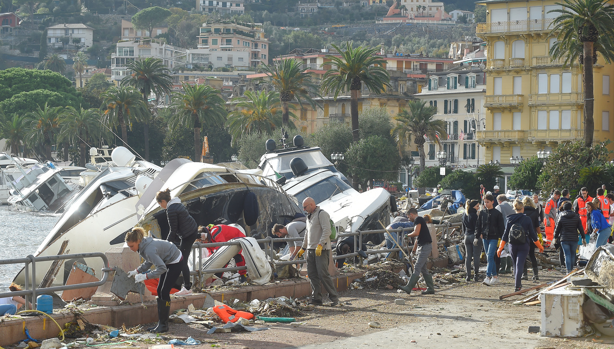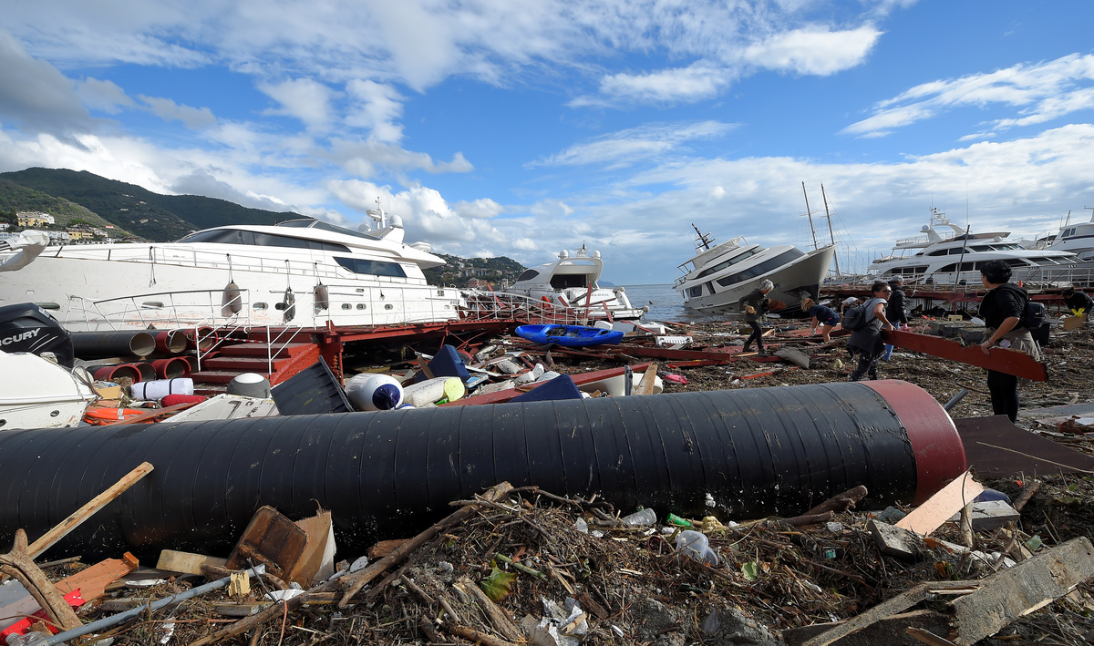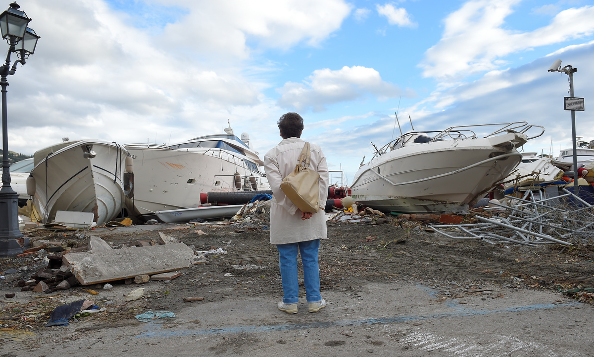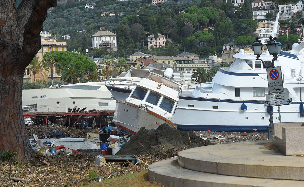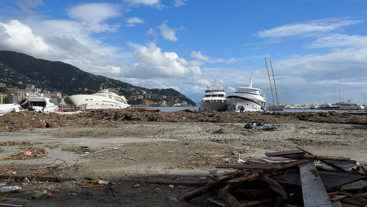 The breakwater walls in the chic seaside resort of Rapallo were destroyed by pounding waves, allowing in a surge of water that toppled dozens of luxury yachts and inflicted heavy damage on the port area.