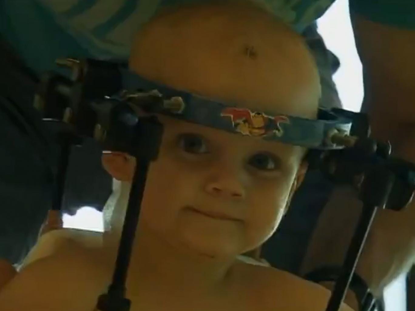 Jaxon now has to wear what his family calls his "halo" to help the bones fuse back together. After wearing it for eight weeks, doctors say he will be able to live a normal and healthy life